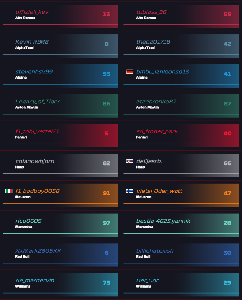 Fahrhilfen erlaubt; außer Lenkhilfe, Boxenstoppassistent, ERS-Hilfe und Bremshilfe