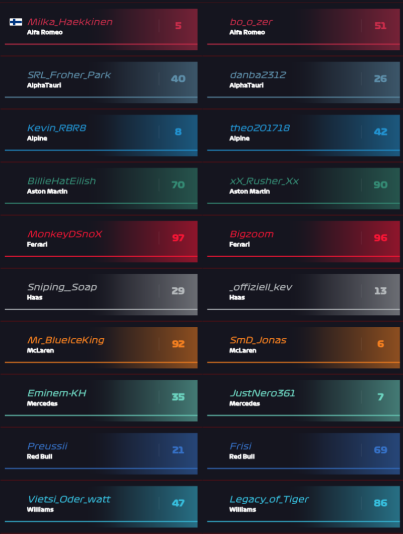 Aktuelles Fahrerfeld der Liga 5